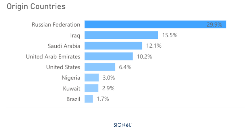 Source: Crude oil flows from Russia to India from Signal Ocean