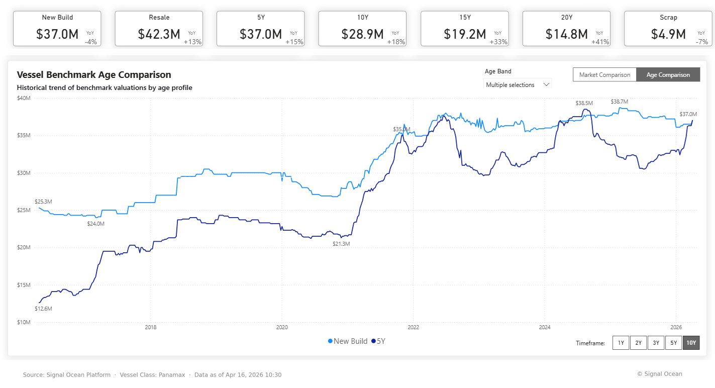 At the same time, newbuilding prices have recently moved in line with second-hand values, with a 5-year-old Panamax bulker valued at approximately USD 37 million. This shift may begin to support newbuilding orders relative to second-hand purchases, although ordering activity remains sensitive to geopolitical market conditions.