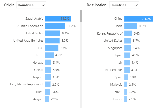 The concentration of long-haul global crude exports into Asia is pronounced. Analysis of these flows by origin and destination underscores the structural significance of Russia in meeting the import demands of China and India.