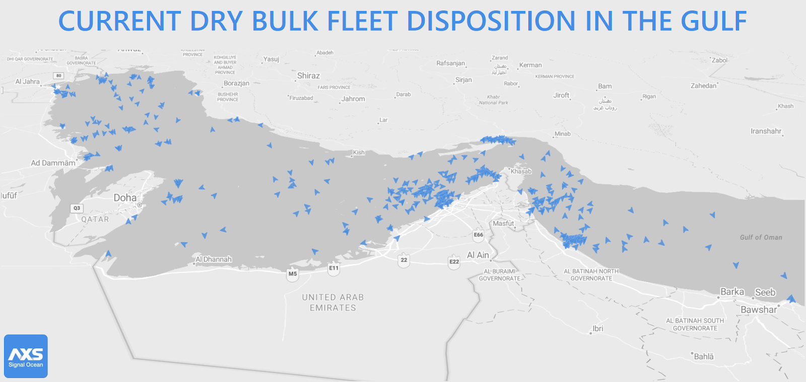 The more recent dataset reinforces this pattern, with a further 11 dry bulk vessels exiting the Gulf, including: